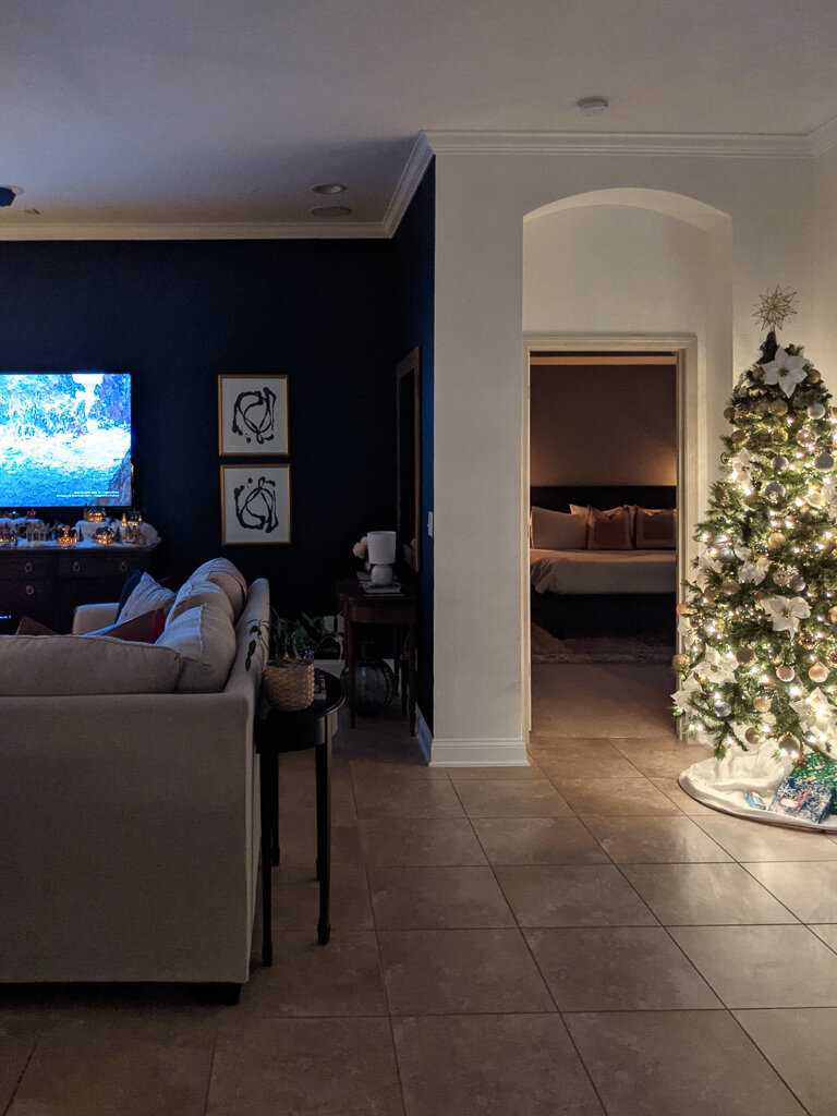 Our family room typically gets the Christmas tree, but this year for some reason it felt cramped in the corner. So I moved it to the corner right off the main bedroom.