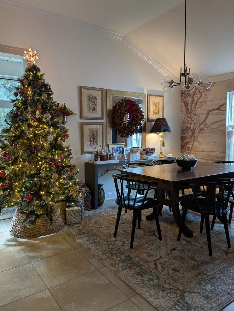 Our dining area is open concept, so it needs to flow with the rest of the house but still hold its own. This year, the tree is the absolute star of the show.