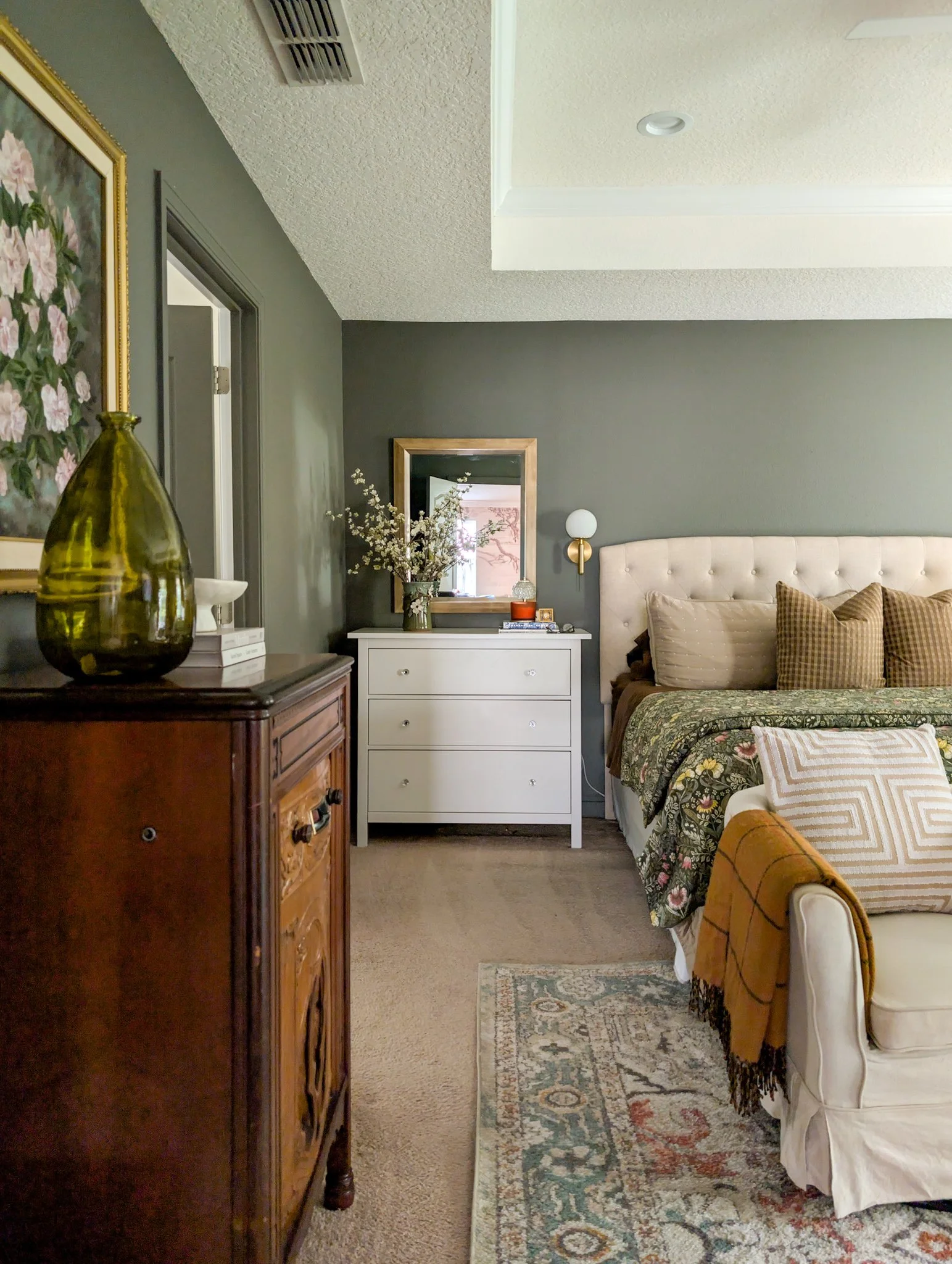 Lighting is Key: Swap out any harsh overhead light bulbs for warm, amber tones. I rely heavily on bedside sconces and dimmers. A soft, low light instantly feels safer and more intimate than bright white light.