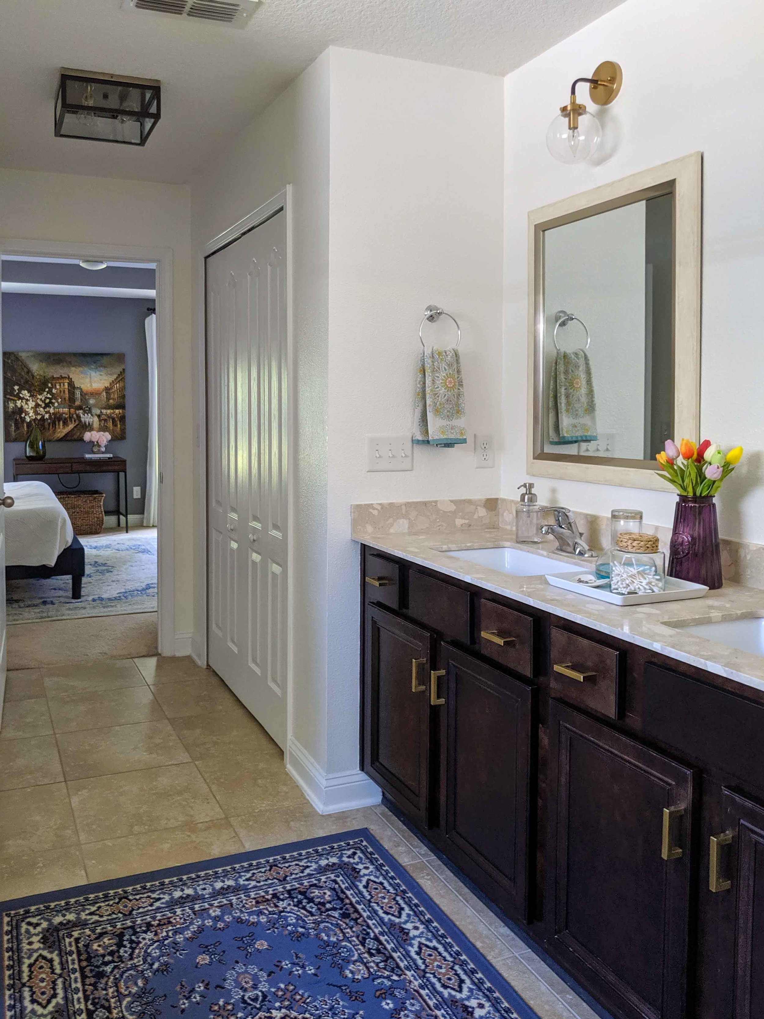 Hello! It's been a while since I posted about our master bathroom update because…life happened. My brothers and their families came to visit for the summer and it was fun to disconnect for a while and enjoy some family time. Now that things are settling back down, I'm ready to start back on working our home projects, with the first one being finishing up the master bathroom refresh.