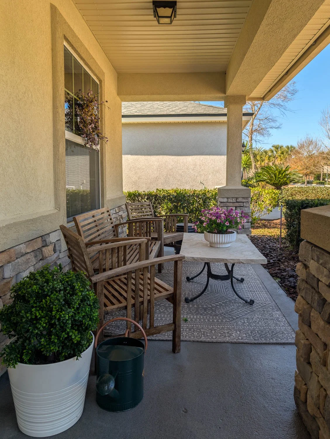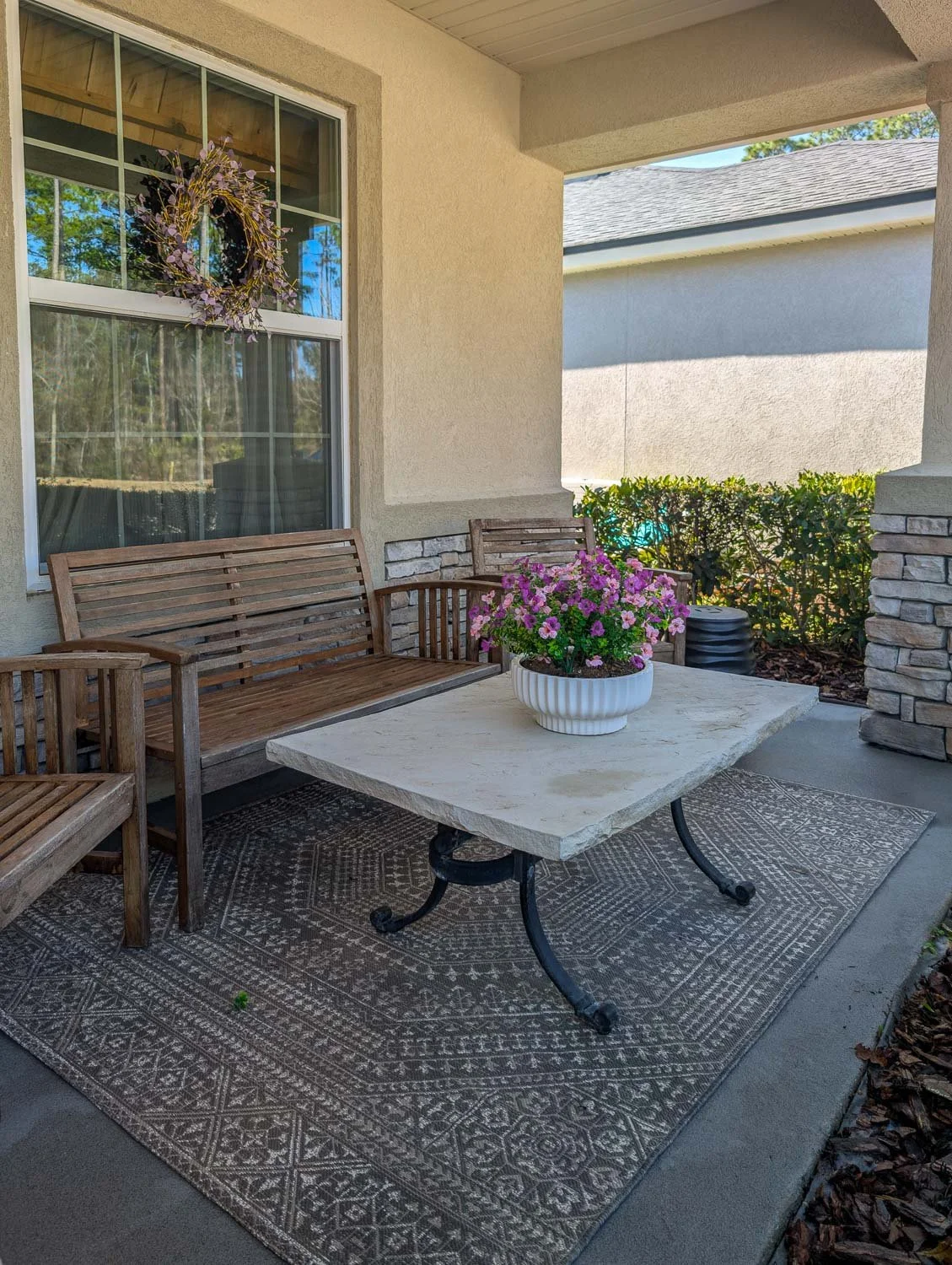 Pro tip: If your front door is inset like ours, don't be afraid to go the faux route! Since this area is tucked away from the sun, high-quality artificial greenery is a total game-changer; it stays vibrant all season without the watering struggle.