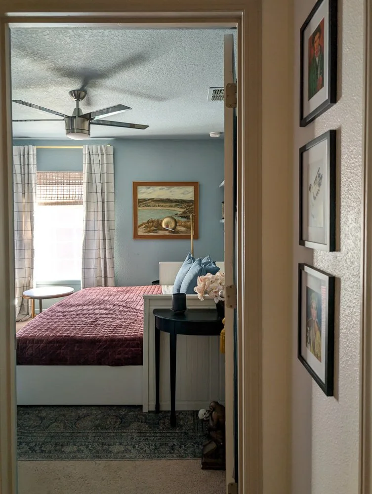Providing the comforts of home, but elevated:) I like to have a carafe filled with water on the bedside table, along with a cell phone charger, so that they can charge all their electronics. Finally, leaving the TV remote and a book that I think they would enjoy, all laid out neatly, is the finishing touch. These small, thoughtful gestures transform a guest's stay into a relaxing, personalized experience, ensuring anyone who visits feels not just welcome, but truly cared for.