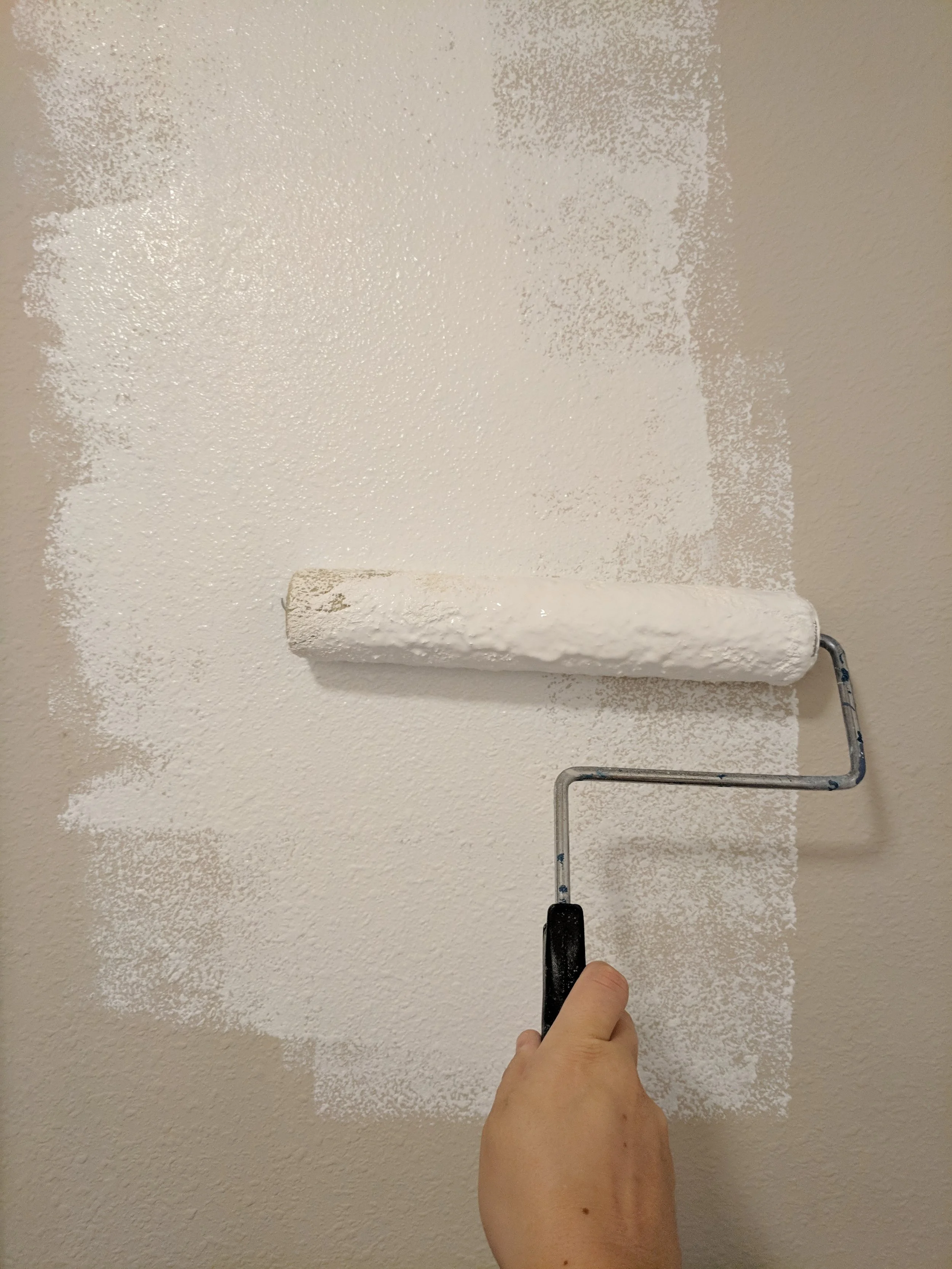 The less paint on your roller the better. After putting some paint on your roller, wipe off the excess on a paper towel.