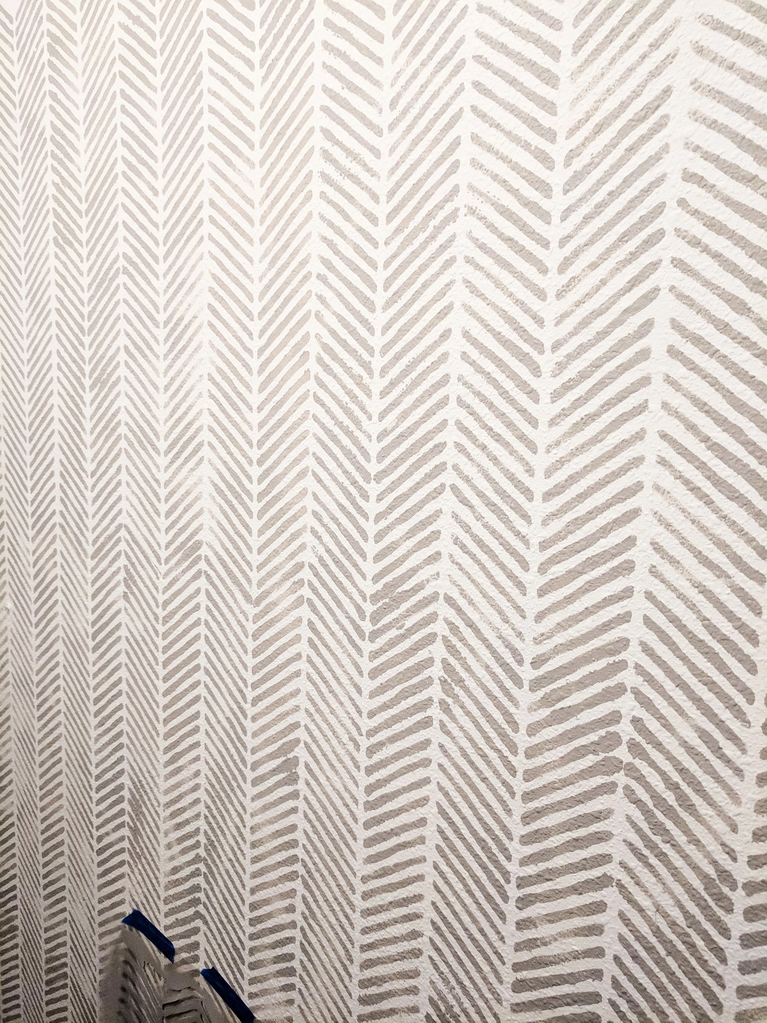 I had heard both good and bad things about wall stenciling and had always wanted to give it a shot. When selecting my stencil from Cutting Edge Stencils, I decided to focus on one that I knew I wouldn’t have to have perfect lines. We have textured walls and I new that the paint would bleed a little. After scouring all the beautiful stencils that Cutting Edge Stencils provides, I decided on the Herringbone Geometric Stencil.