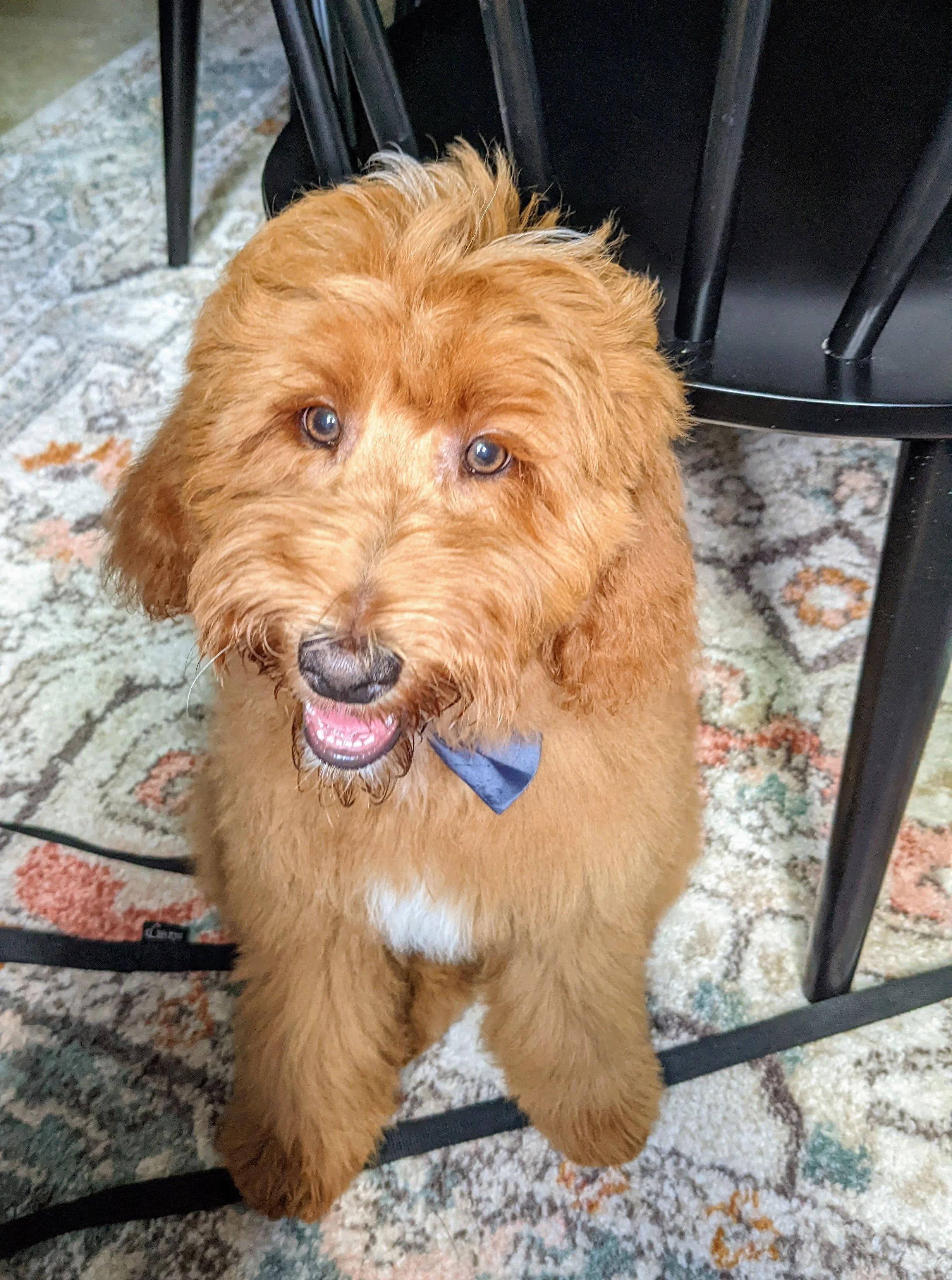 We did A LOT of research regarding different dog breads and eventually landed on a Goldendoodle because of their non-shedding coat and their gentle personalities. As a family that suffers from allergies, it was important to us that the dog had a non-shedding coat. The last thing we wanted was to introduce a dog to our family to be forced to find it a new home because of our allergies. It was also very important to us that the dog be gentle and good with small children since we have two kids under six.